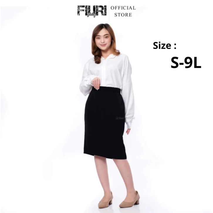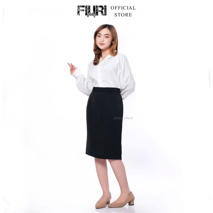 TERMURAH FIURI Official - Amel Basic Skirt S-9L - Rok Span Pendek Di Bawah Lutut Kuliah Kerja Magang Sales Kantor