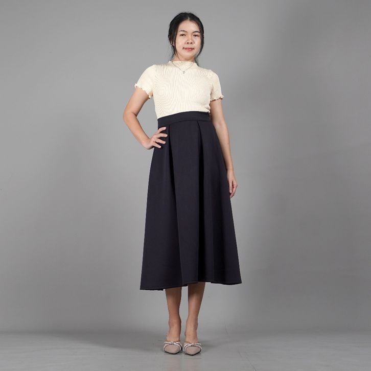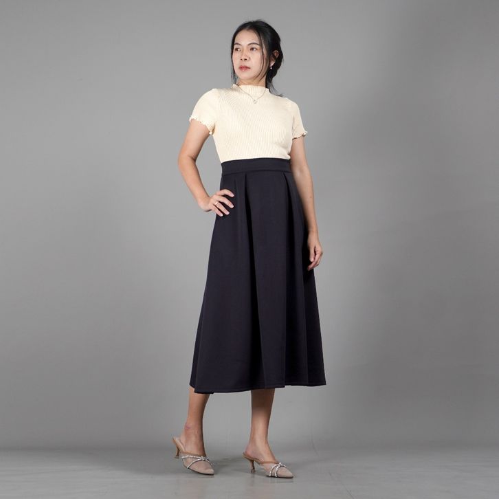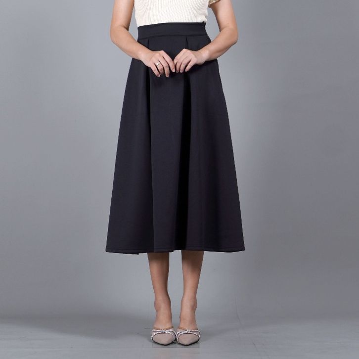 TERMURAH Okechuku REBECA Rok Hitam Polos Midi Skirt Rok Korean Style - HITAM ofifs