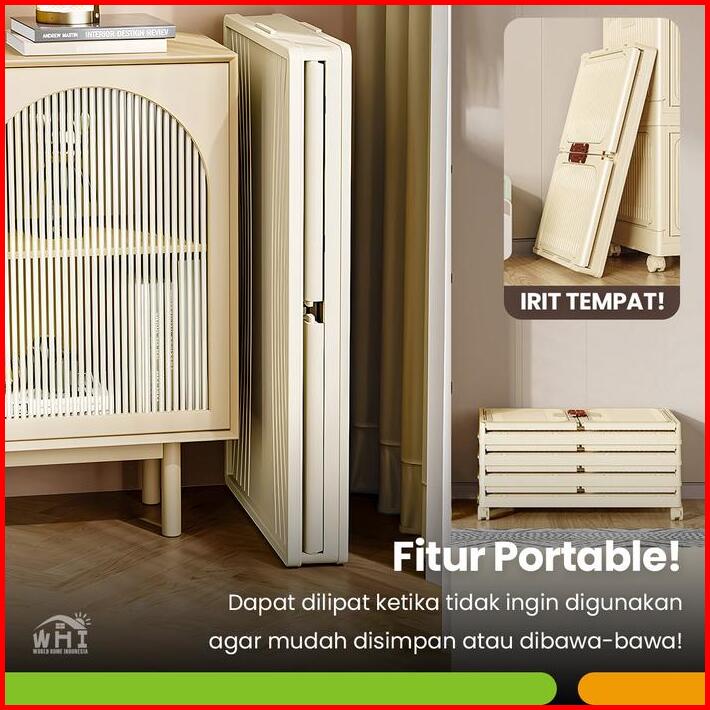 Worldhome Lemari Lipat Serbaguna 2 Tingkat Rak Lipat Multifungsi Tutup Mika Bening Bahan Plastik Pp