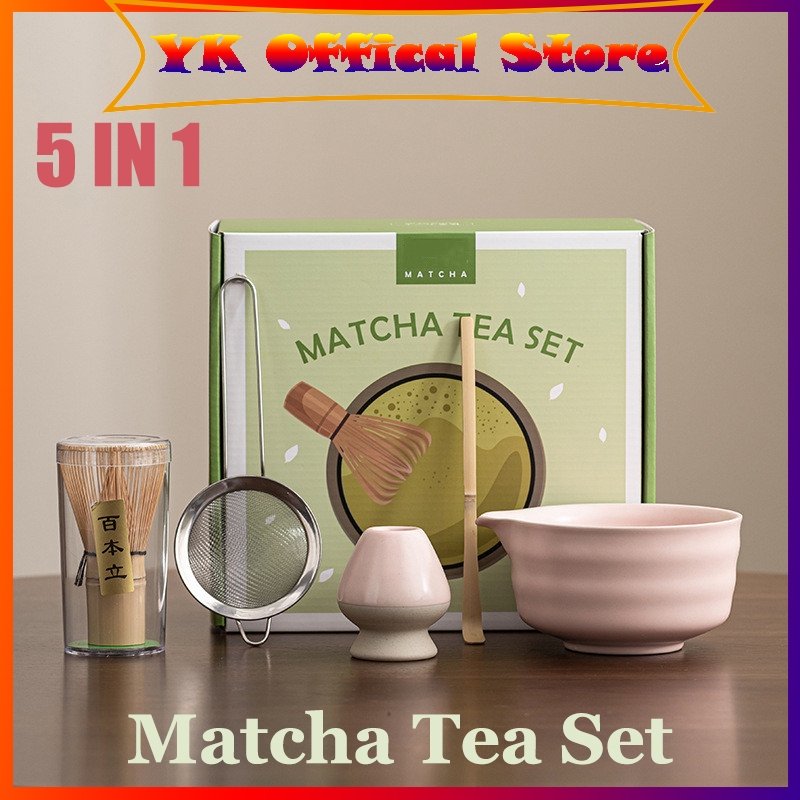5 in 1 Matcha Tea Set Merah Muda/Putih/Hijau Matcha Starter Kit Matcha Bowl Chawan Chasen Holder Minimalis Kado Unik Set