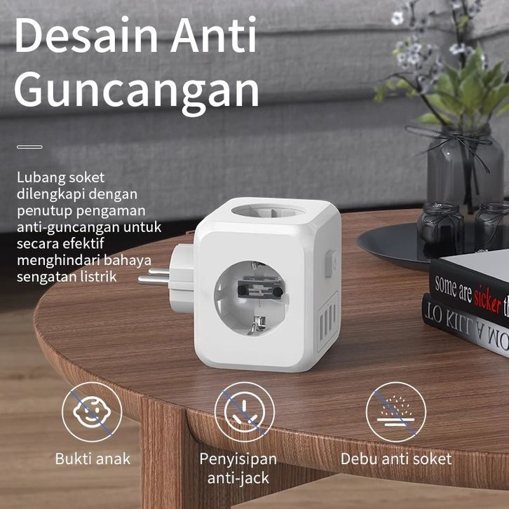 (HOT)KIVEE Stop kontak colokan listrik kubus 7-in-1 USB+Type C Fast charging Daya Max 4000W