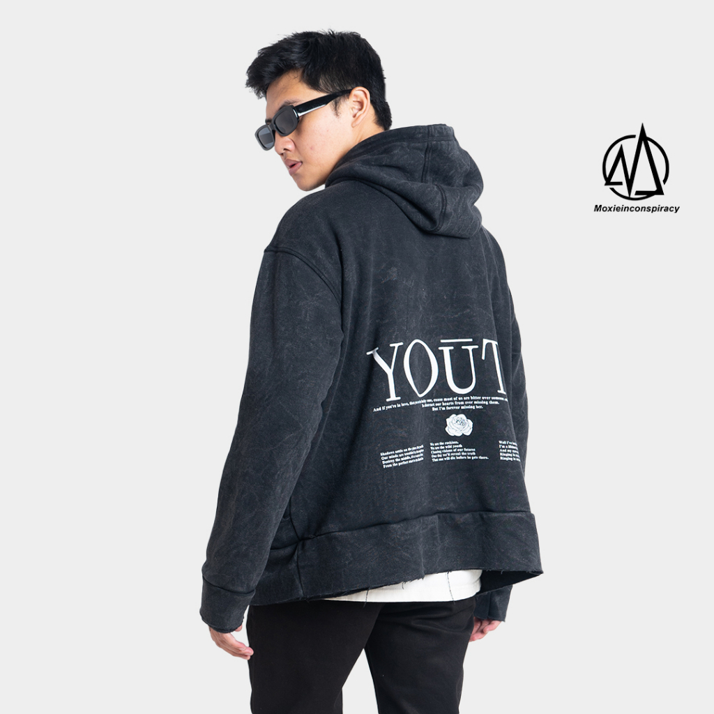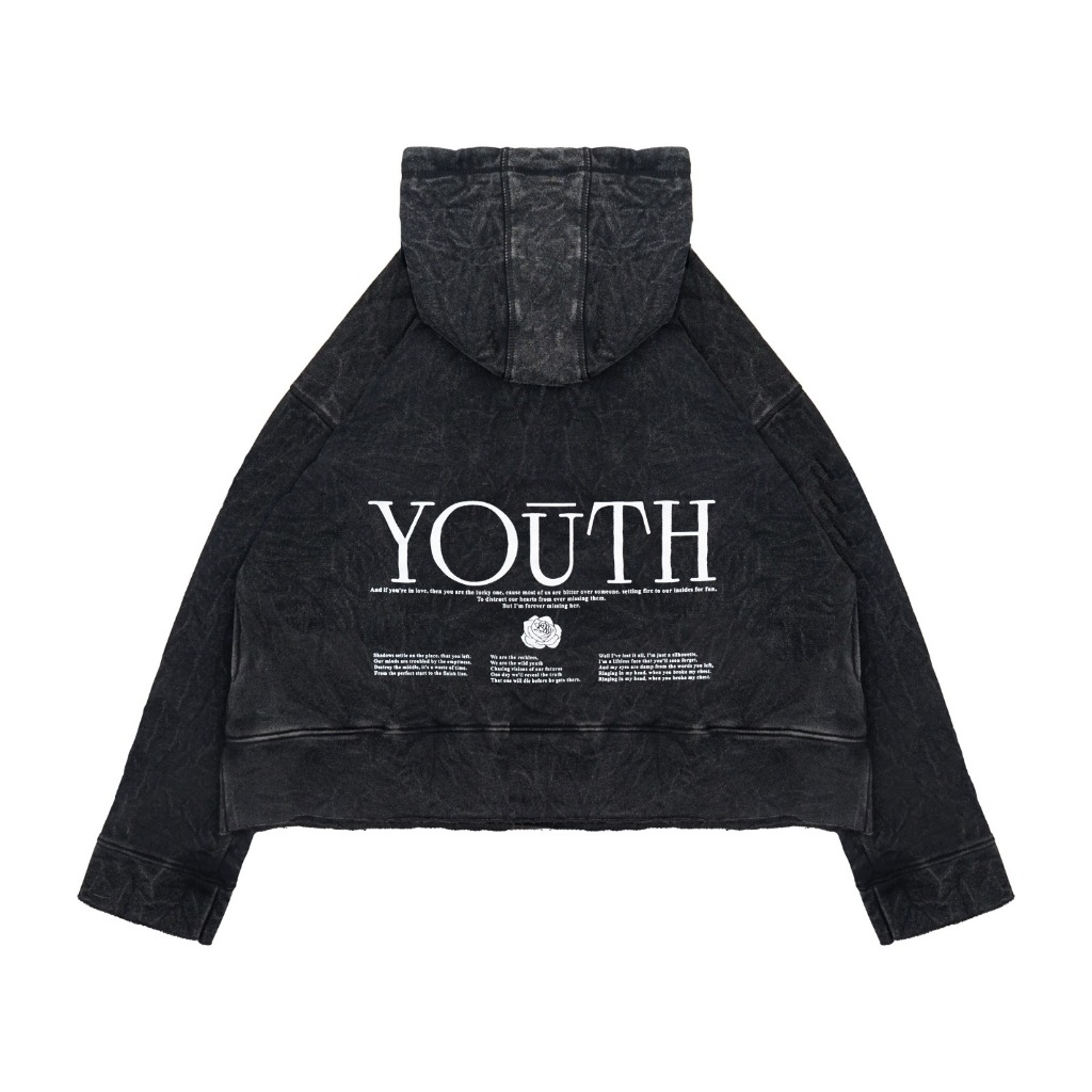 [Mall] Hoodie Crop Washed Unfinish Oversize Youth Unisex Fleece Tebal Lembut Kekinian Warna Hitam Washed Keren