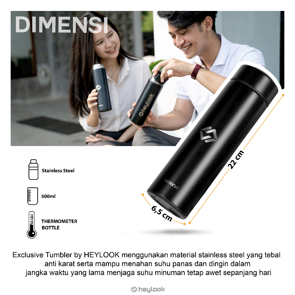 HEYLOOK Official - Tumbler Stainless Steel Botol Minum Hitam Thermos Bottle 500 ml Tempat Air Minum Botol Tumbler Air Panas Air Dingin
