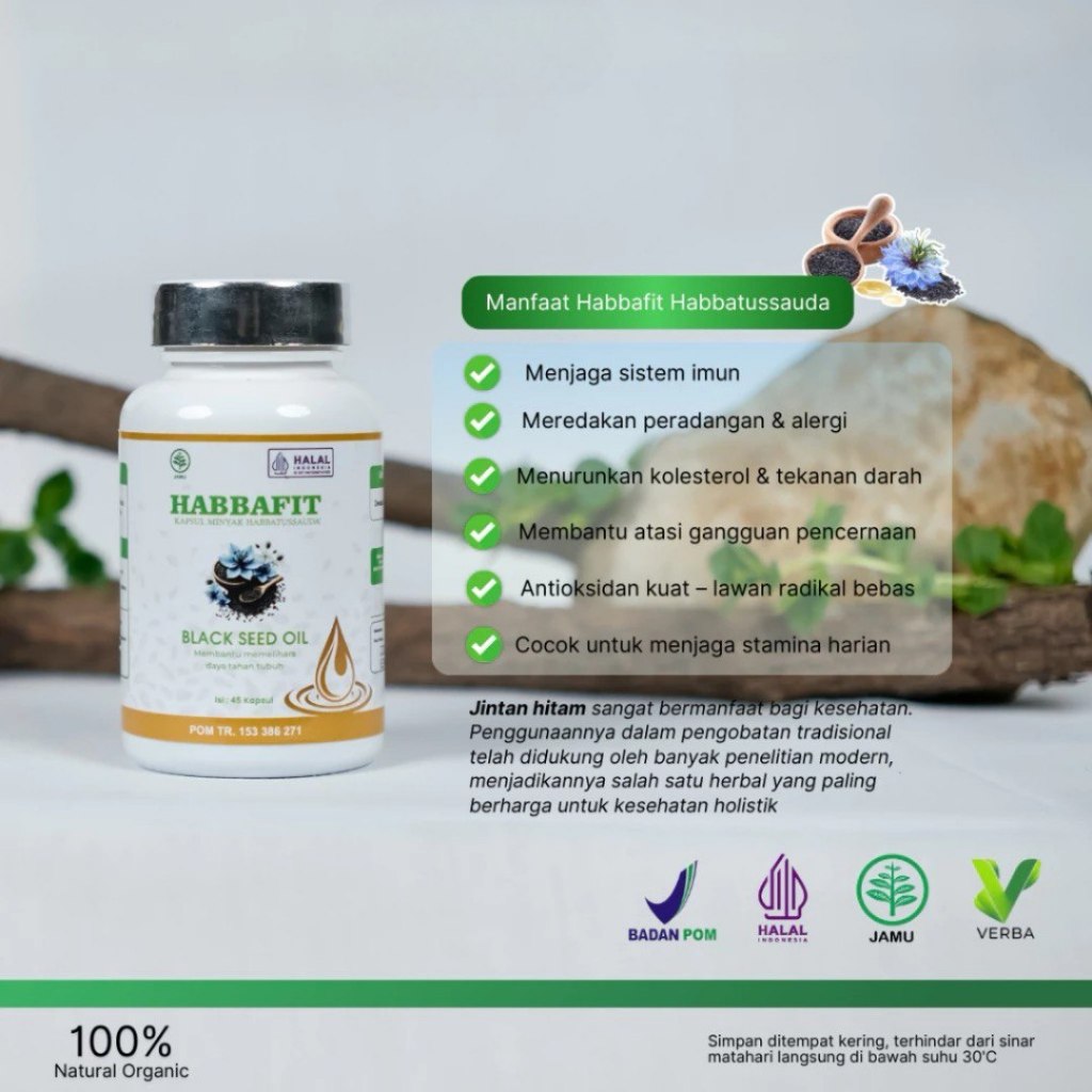 Habbafit Kapsul Herbal Penurun Kolestrol Tinggi Dan Darah Tinggi Suplemen Daya Tahan Tubuh BPOM