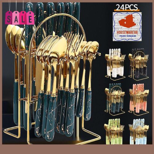 Sendok Cutlery Set Sendok Sultan Makan Set Isi 24 Set Gold Marble Sendok Makan Set Bahan Stainless Tebal Rapi Golden Spo