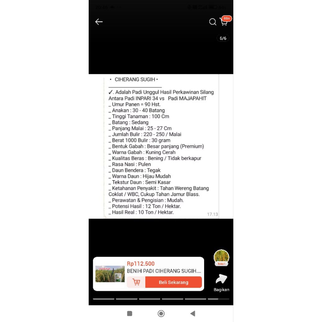 Benih Padi Ciherang Sugih Hasil Tinggi 12 Ton/Ha