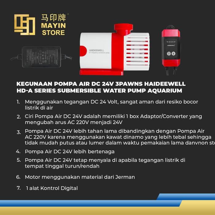 HAIDEEWELL Pompa Air DC 24V 3Pawns HD-A Series Celup Submersible Water Pump Inverter Aquarium