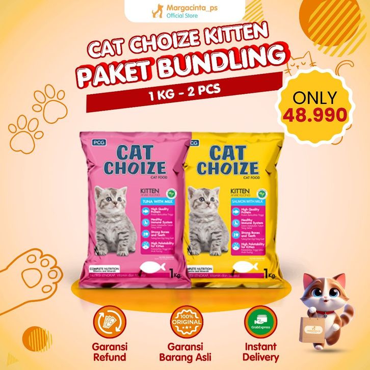 PREMIUM Paket Bundling 2 PCS Makanan Kucing CAT CHOIZE KITTEN 1 KG Kemasan Freshpack ohodk