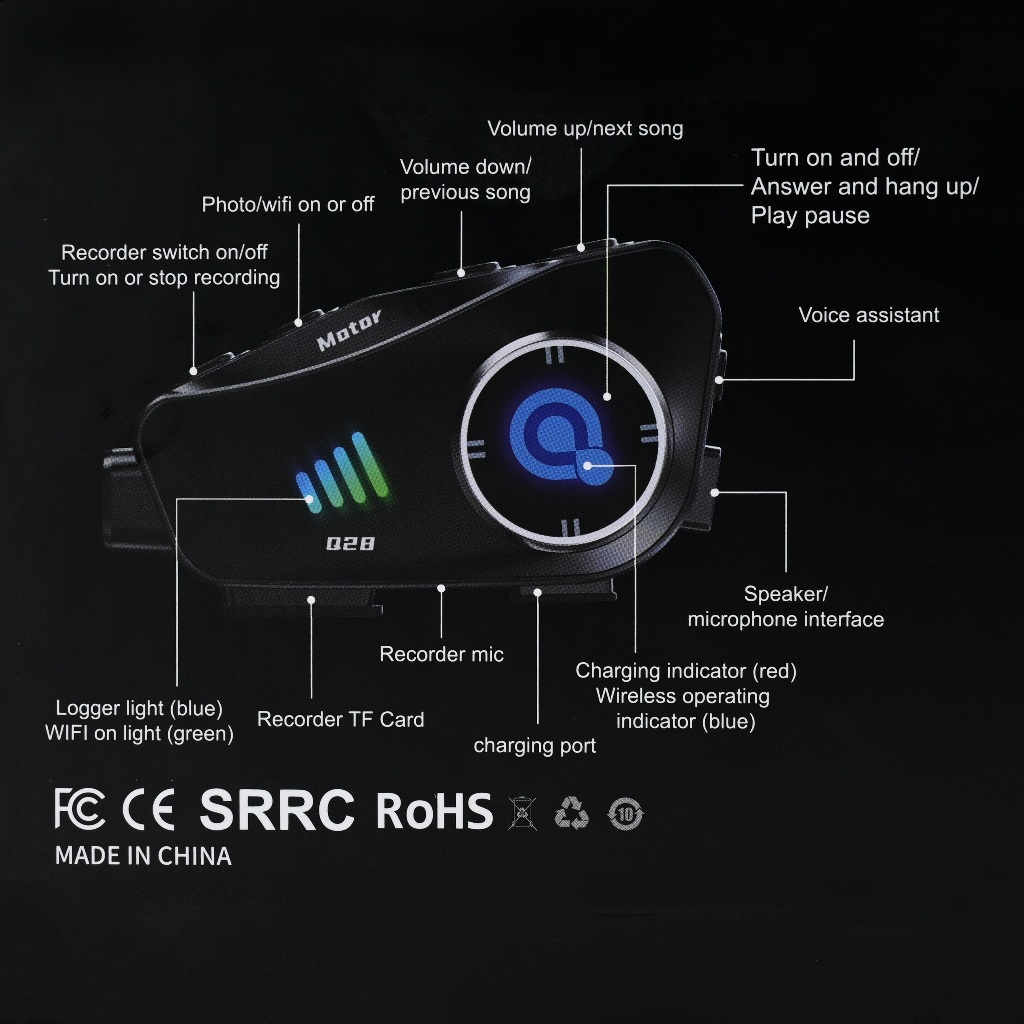 Intercom Camera Recorder 1080P Bluetooth Headset Helm Interkom Q28 Tahan Air Kamera Motovlog