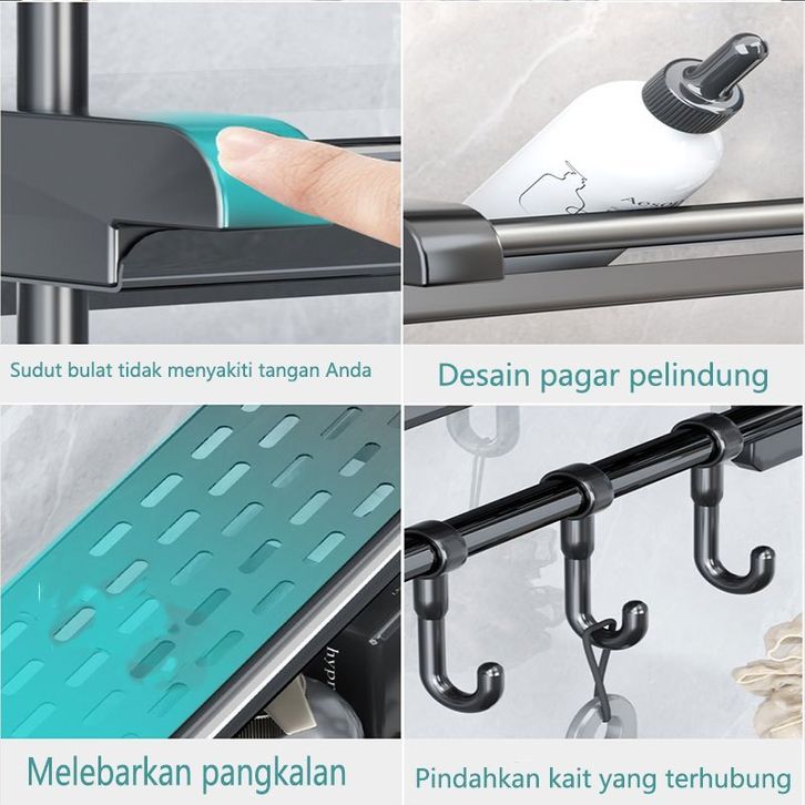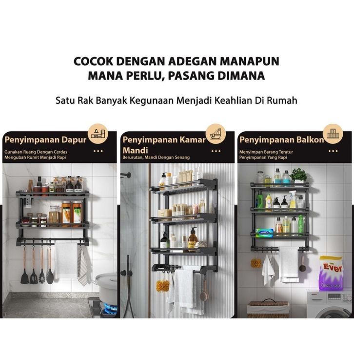 Rak Sabun Kamar Mandi Rak Kamar Mandi Stainless Hitam Dinding Rak Bumbu Dapur Dipasang Tanpa Harus Dilubangin Dibagian