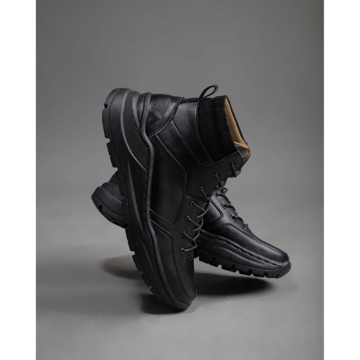 Sepatu Pria Otiv Hardy Black - Sepatu Boots Kulit Casual Pria Kuliah Kerja Traveling Riding
