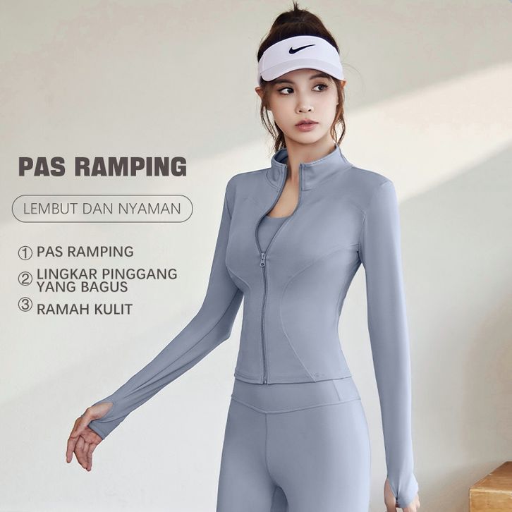 Setelan Olahraga Wanita Lengan Panjang One Set Jaket Cewek Kekinian Korean Style Pakaian Yoga Terlaris