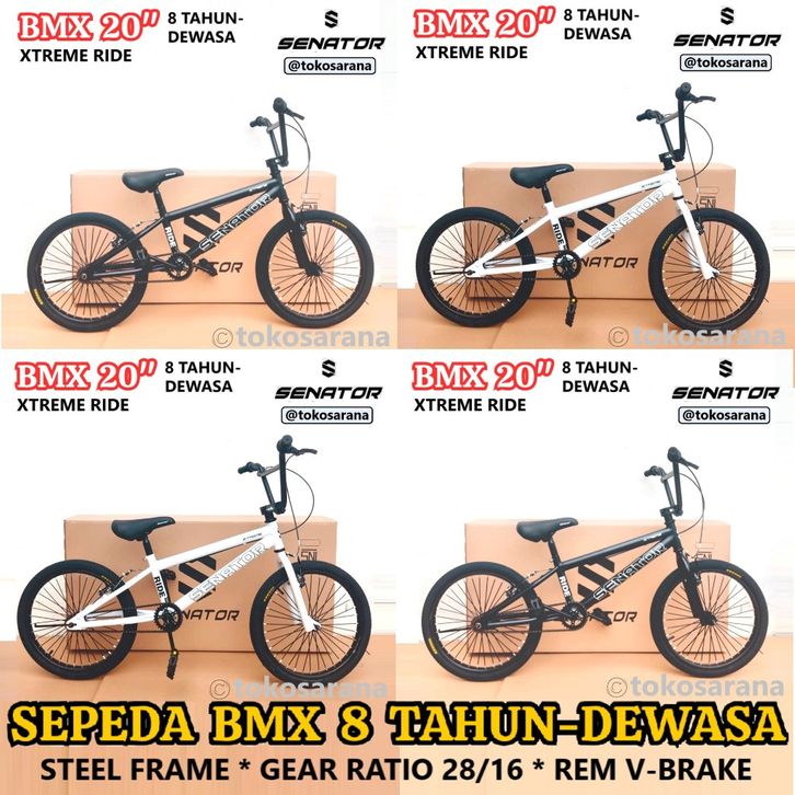 Senator Xtreme Ride Sepeda BMX 20 Inci Rem V-Brake Rangka Steel Gear Ratio 28/16 Anak 8 Tahun Dewasa