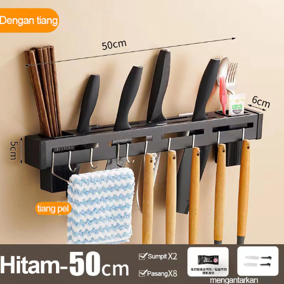 Rak piau dinding Dapur Stainless Steel Rak Gantung Dapur Multifungsi Rak Tempel Tanpa Bor/Rak sendok Garpu Gantung Dapu