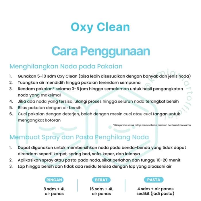 OXY CLEAN - Serbuk Ajaib Pembersih/penghilang Noda Pakaian yang membandel 500gr.