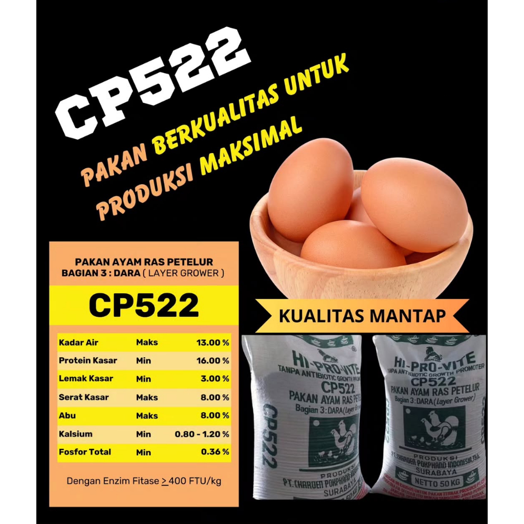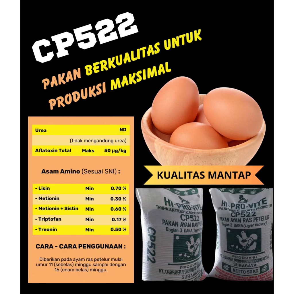 HI-PRO-VITE 522 – Pakan Jadi Ayam Ras Petelur (Dara / Grower) | Grosir 20-50 kg | AyamBebek.com