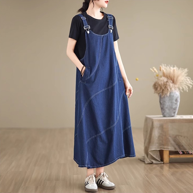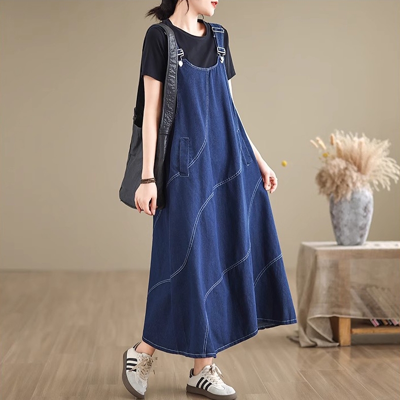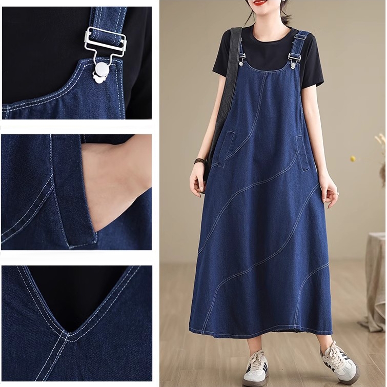 |kekinian.factory| baju kodok jeans wanita overall wanita korean style jumpsuit rok wanita korean style longgar A-line p