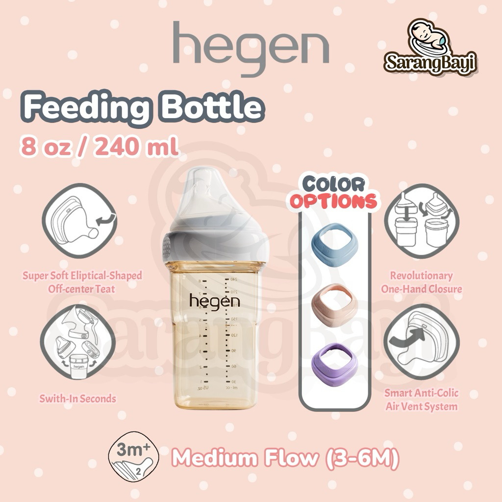 Hegen PCTO Feeding Bottle PPSU 8oz 240ml / Botol Susu Bayi White Blue Purple Pink