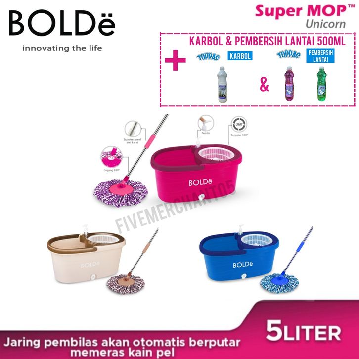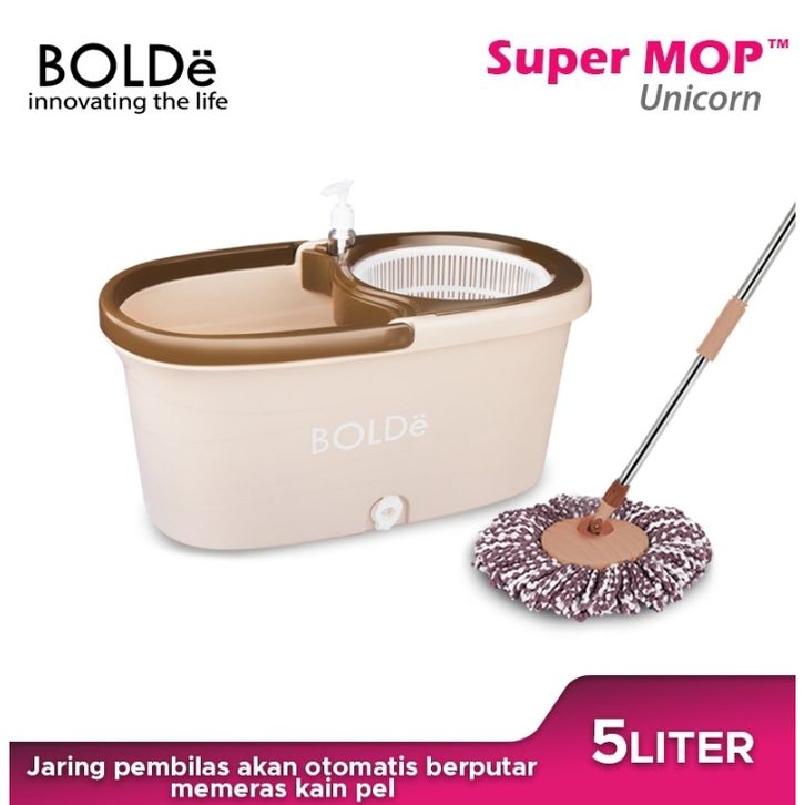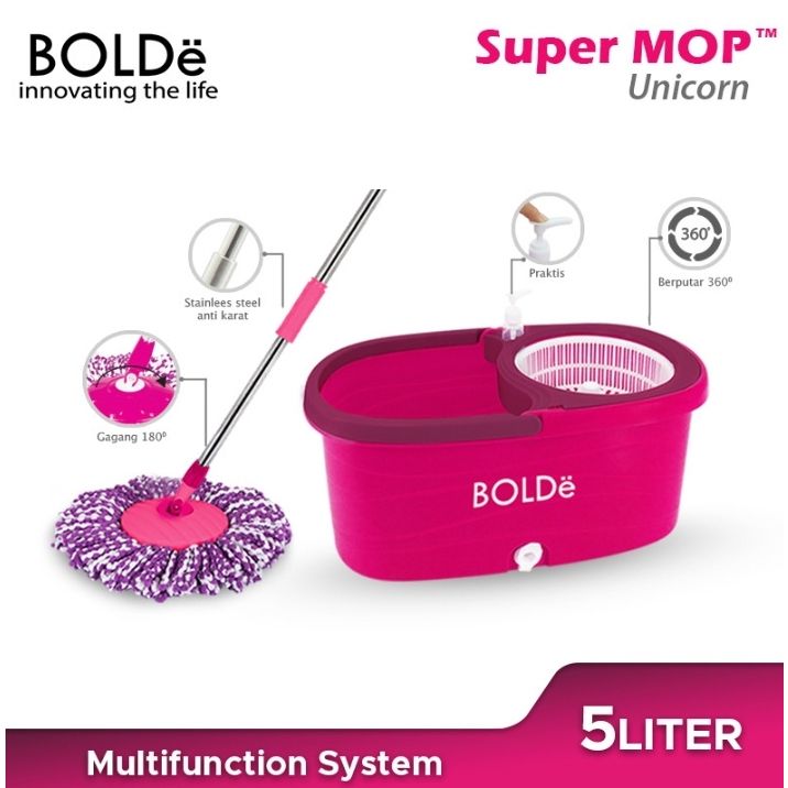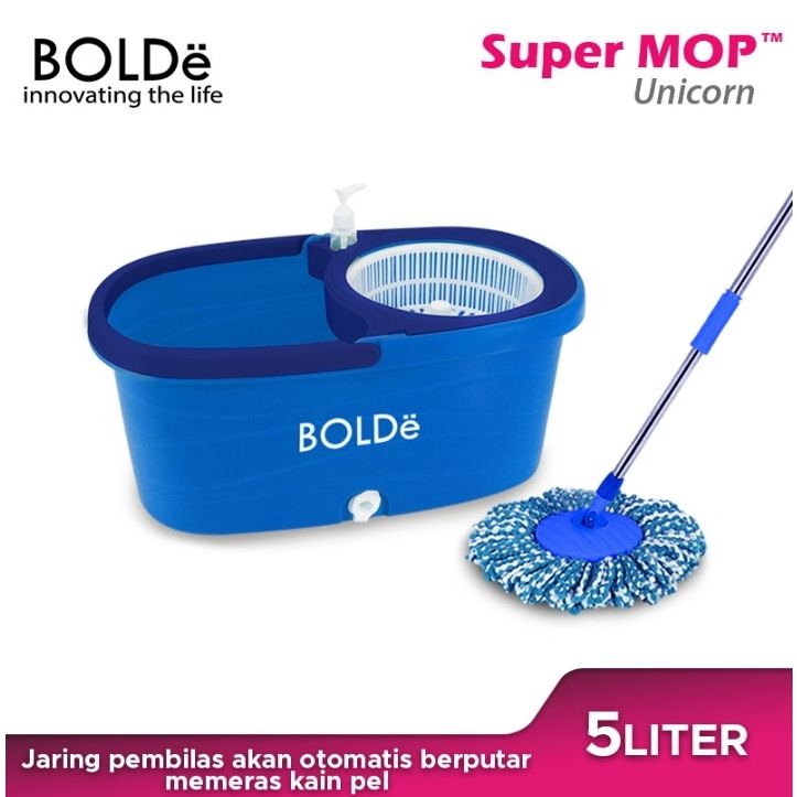 NEW Alat Pel Bolde Supermop UNICORN Otomatis Tongkat Putar Ember Murah Pel Super Mop Paket Pel dan Ember