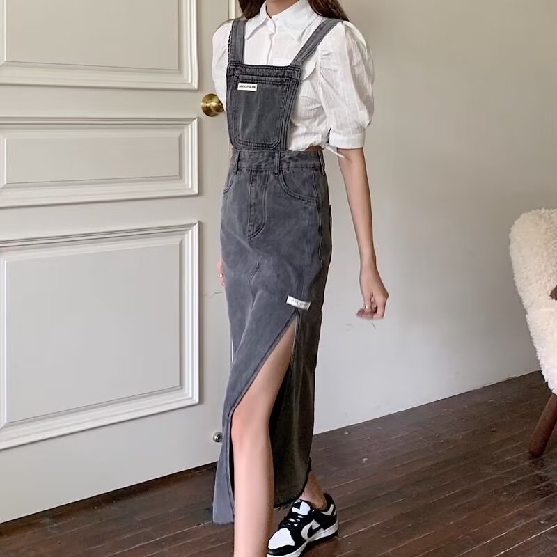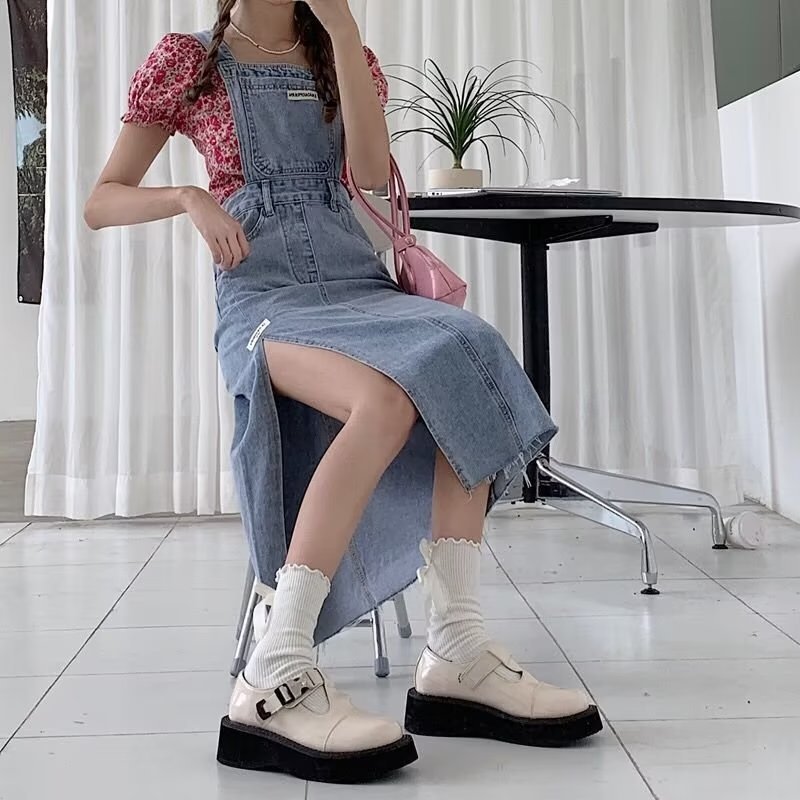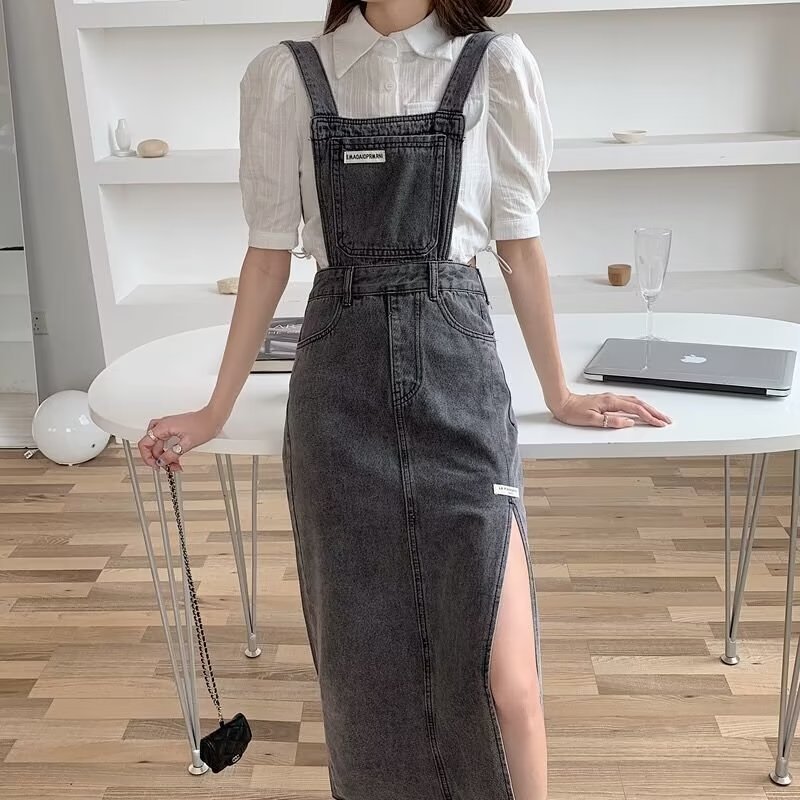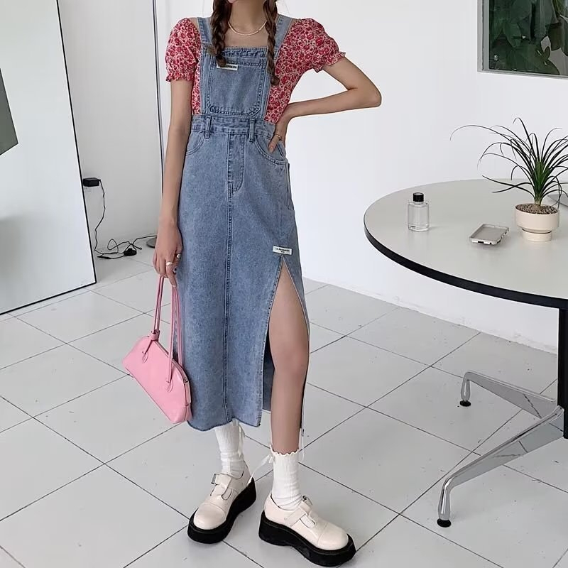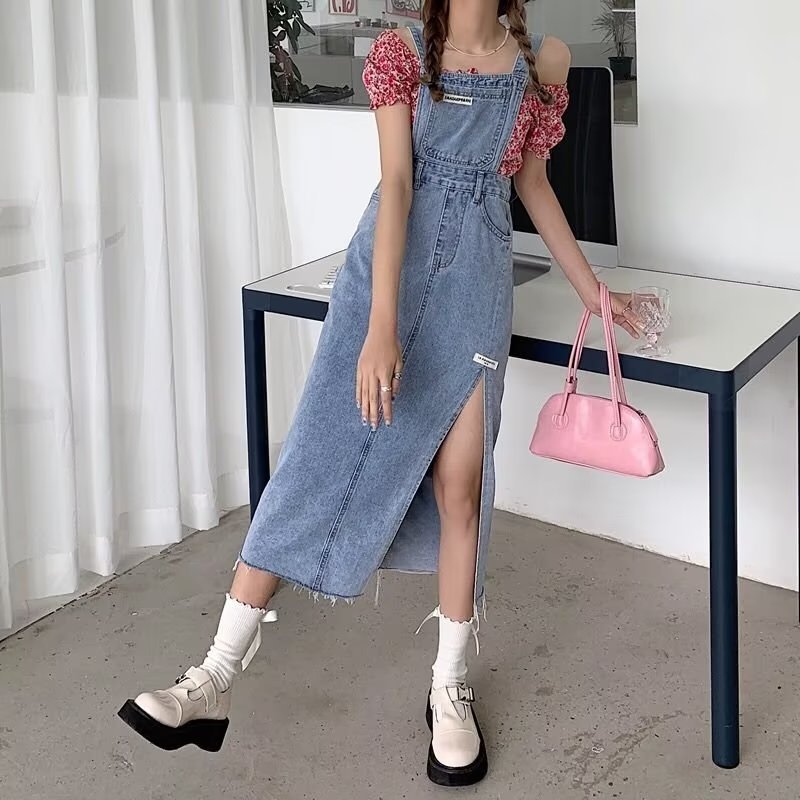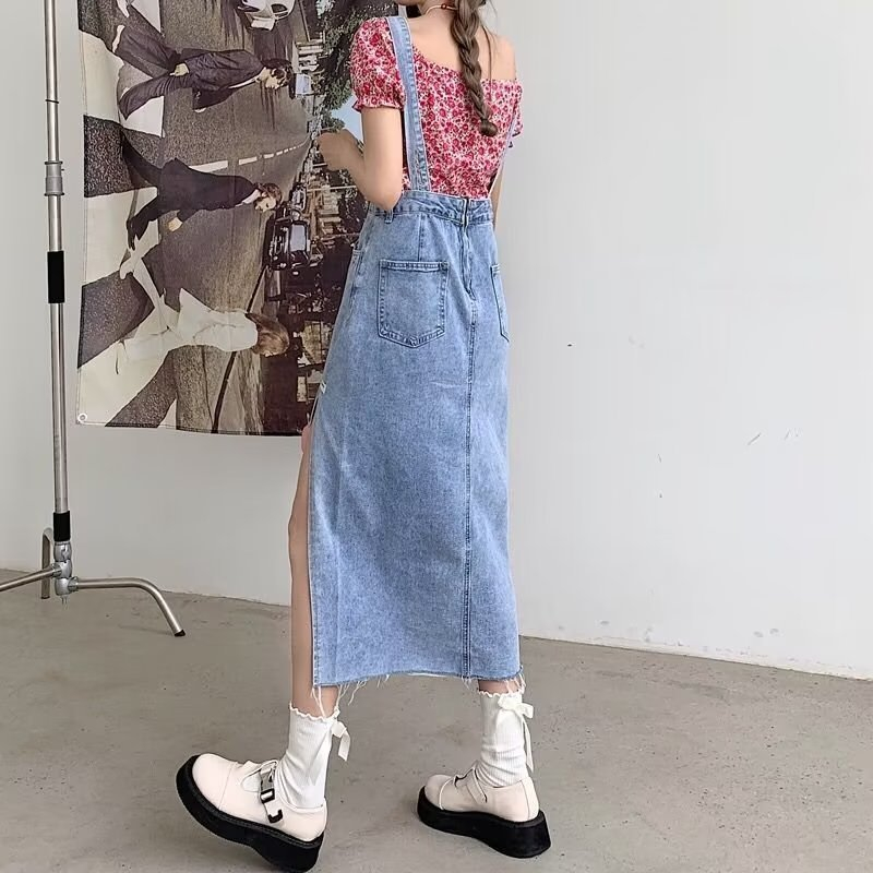 JUMPSUIT WANITA OVERALL SKIRT DENIM ROK KODOK BELAHAN SAMPING-JP008