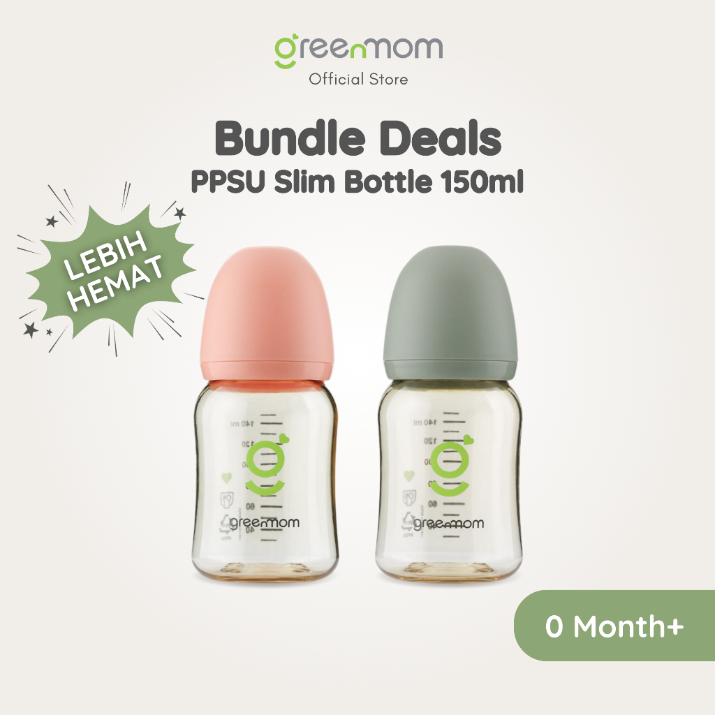 Bundle Deals Greenmom PPSU Slim 150ml / Botol Paling Aman - Bebas Mikroplastik / Anti-kolik / Brand Korea
