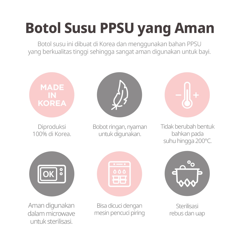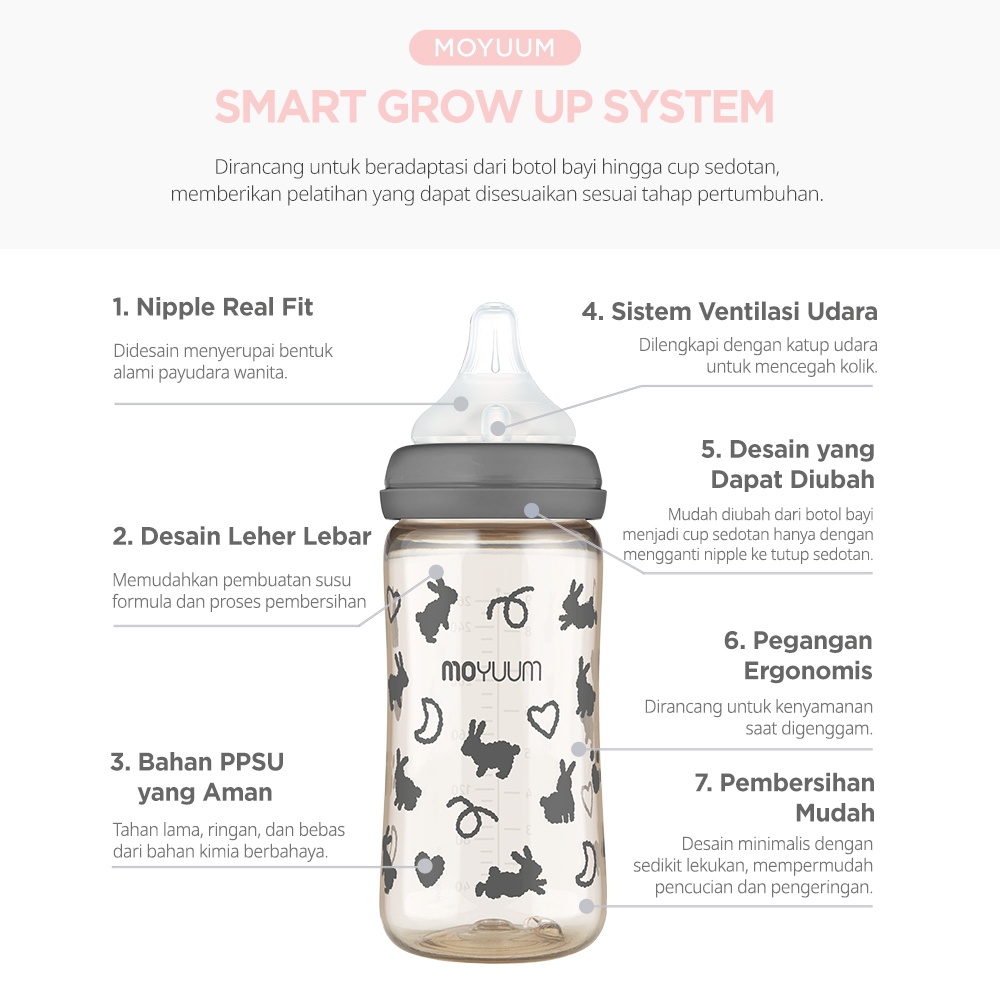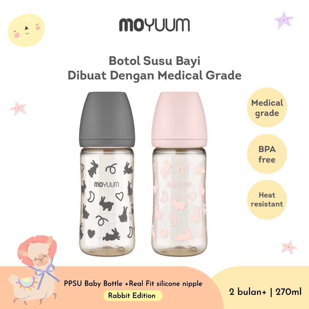 Moyuum Baby Bottle Rabbit 270ml - Botol Bayi PPSU BPA Free / Anti Kolik / Tahan Panas Hingga 200°C