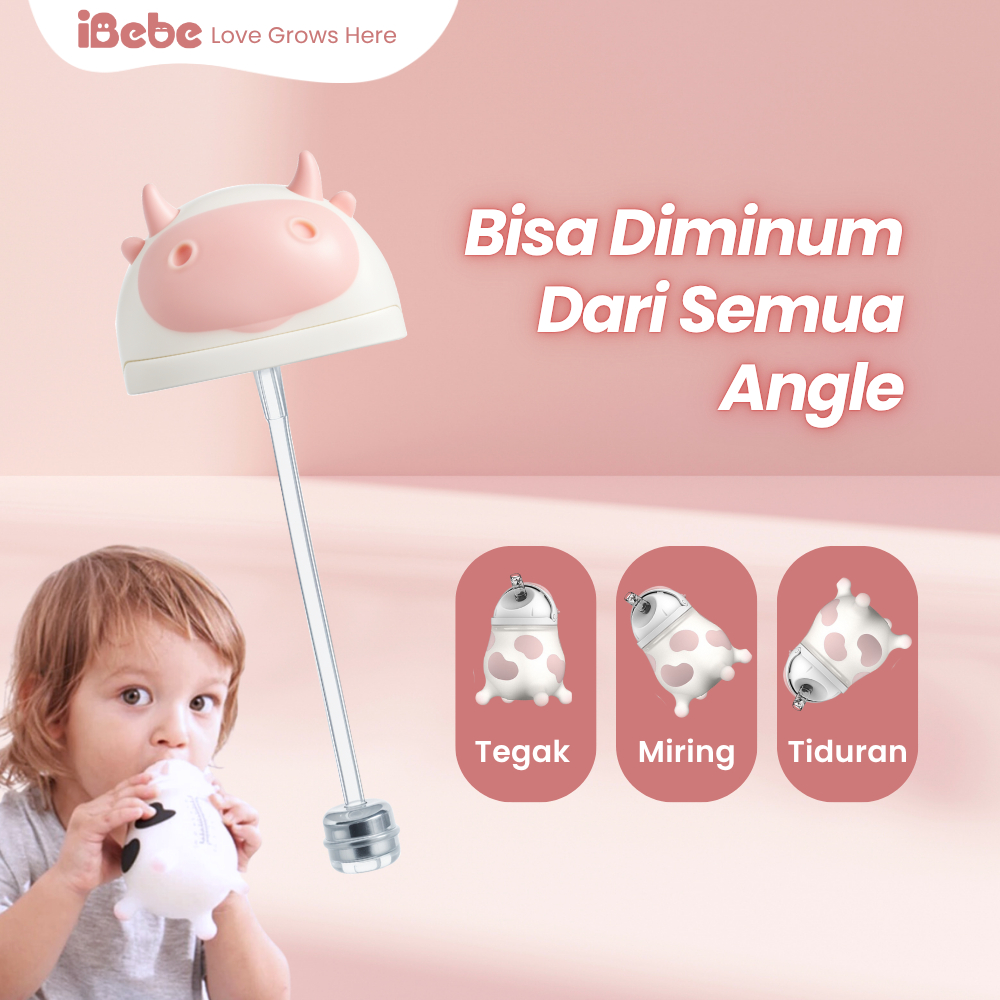 [Ibebe Official] Bundling Botol Susu Silikon 240ml / 330ml + Sedotan Sapi + Strap Gantung | Usia 6B+ | Dot Lembut | Anti