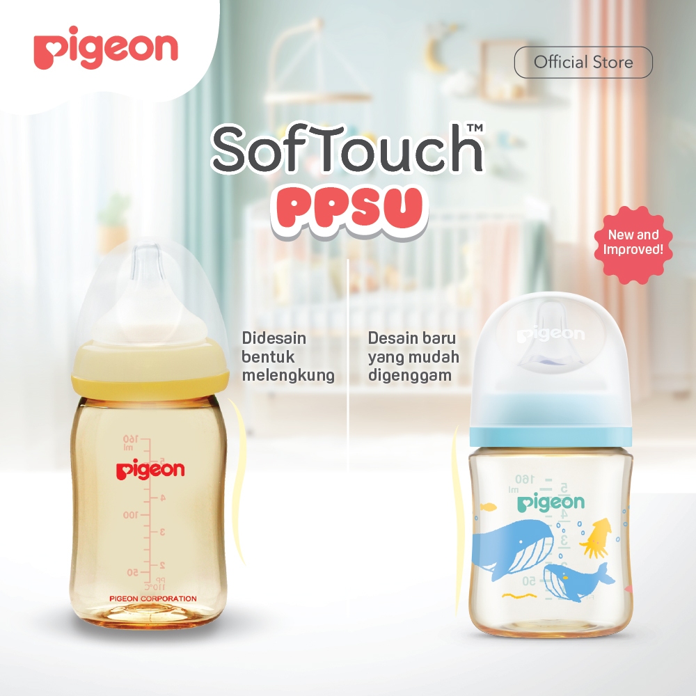PIGEON Botol Biomass-PPSU Wide Neck 160ml with SofTouch Nipple | Botol Susu Bayi | Botol PPSU | Medical Grade | Botol R