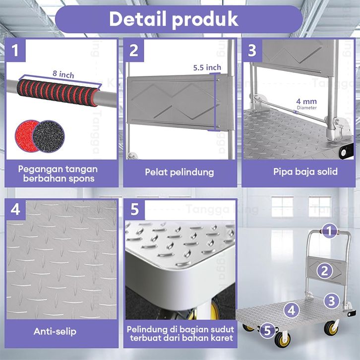 Reaim Handtruck Troli Barang Lipat Model Besi 1000 Kg Besi Ringan Lipat Troli Kecil Troli Baja Kuat Tebal Folding Cart