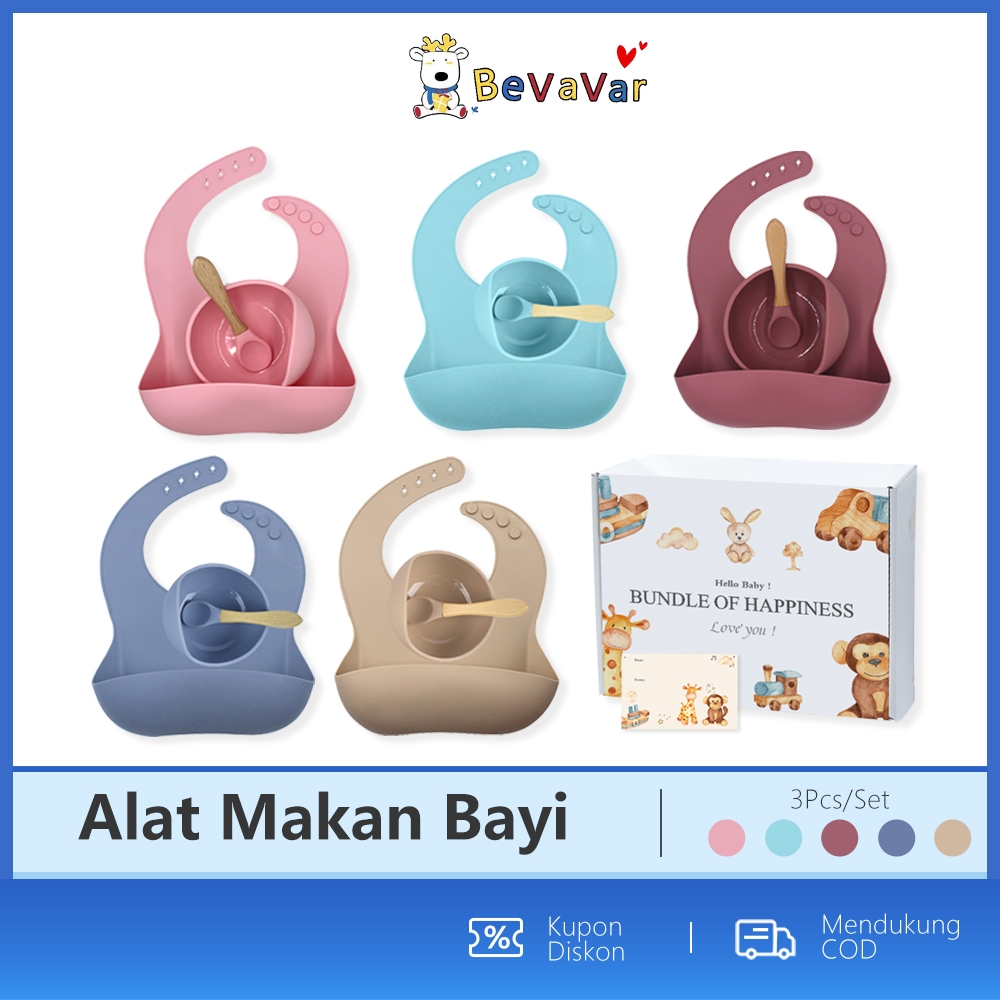 3In1 Alat Makan Anak Bayi Silikon Mangkuk Sendok Bayi Celemek Makan Bayi Silikon Waterproof