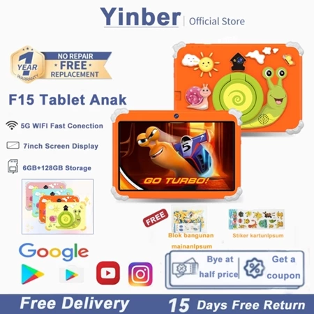 Yinber Tablet Anak Murah F15 Android Tablet Edukasi Anak Untuk Belajar Anak Layar Sentuh 7.1inch 5G WIFI Case Kartun ,