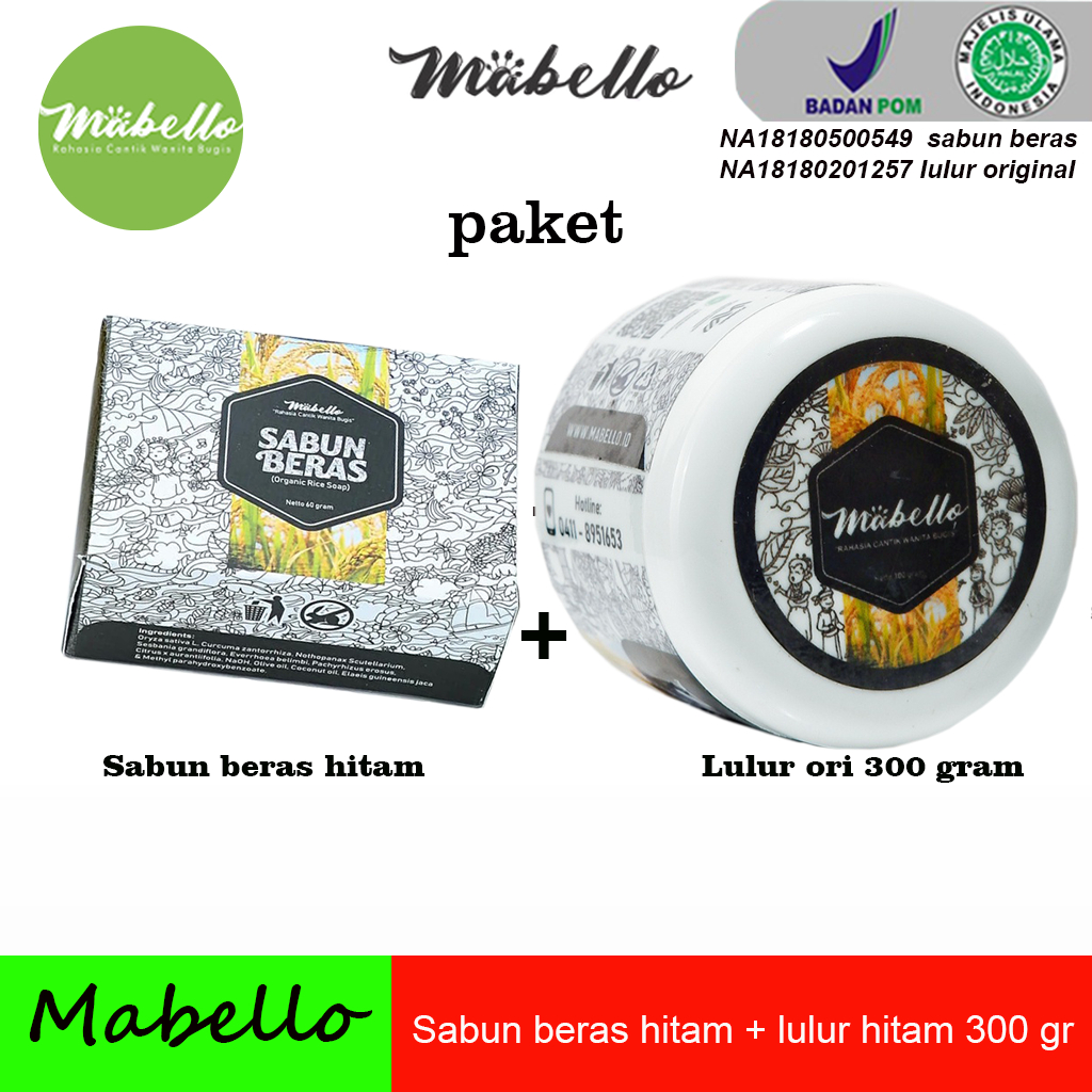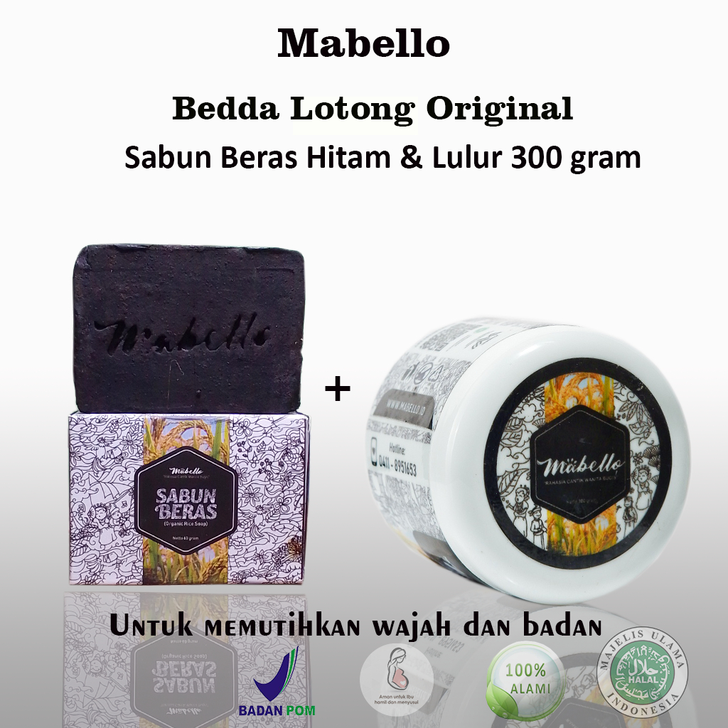 Paket 2 Mabelo Lulur rempah hitam 300 gram dan sabun beras hitam mabello bedda lotong original BPOM