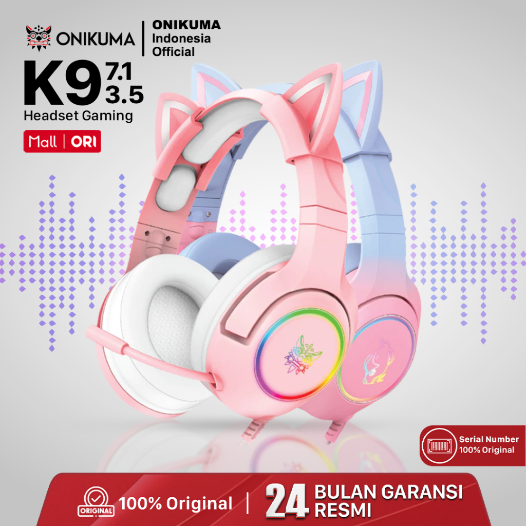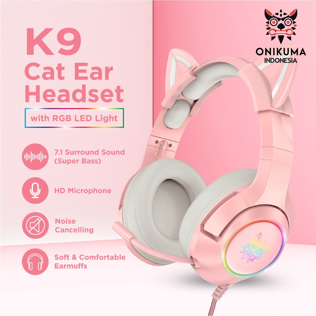 ONIKUMA K9 7.1 All Surround Headset Gaming RGB Headphone Cat Ear Headphone Mic Headphone Kualitas Tingg