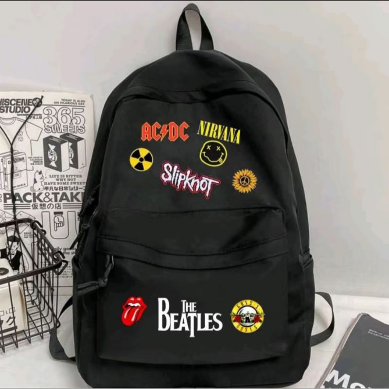 Tas Ransel Band Metal The Beatles ACDC Nirvana Tas Skena Style Anak Sekolah STM SMA SMP Backpack Remaja Pria Wanita Uniseks Model Terbaru