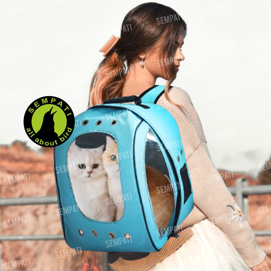 SEMPATI Tas Gendong Astronot 2 In 1 Pet Cargo Tas Bawa Hewan Kucing Anjing Cat Kitten Adult Anabul Puppy Sugar Glider Hamster Tas Ransel Pet Cargo Travel Pet Bag Big Size Clear