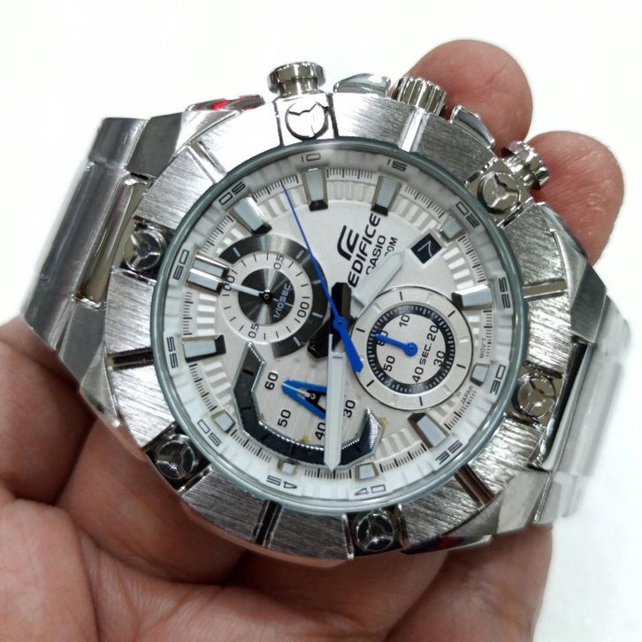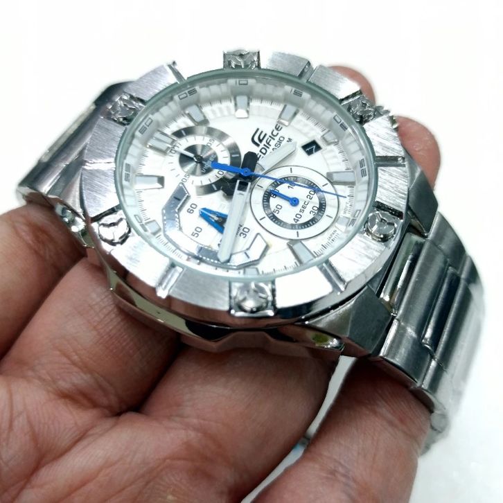 JAM TANGAN PRIA CASIO EDIFICE EFR-569 SILVER WHITE STAINLESS STEEL FREE ONGKIR - FREE BOX