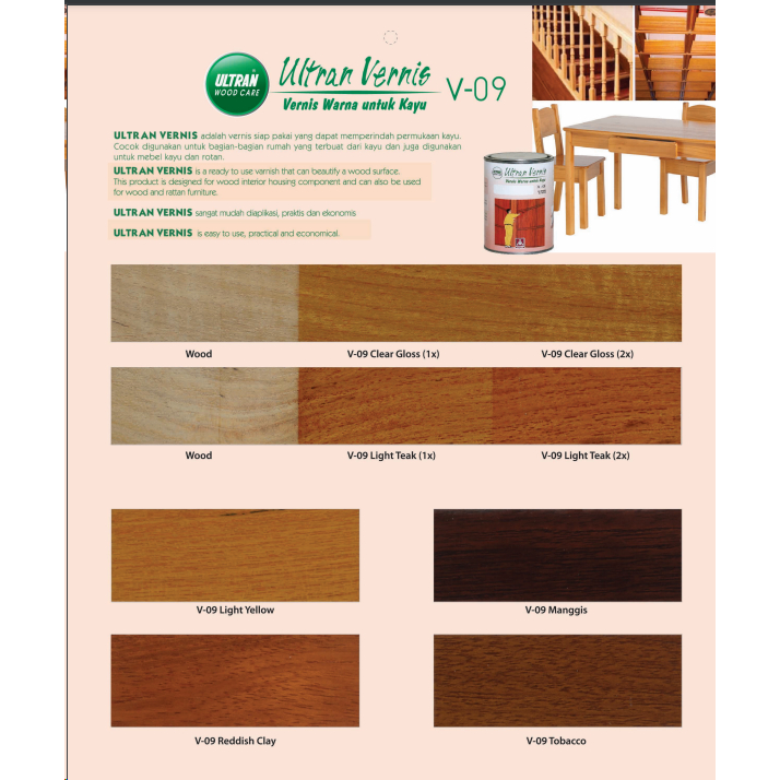 CAT KAYU INTERIOR PROPAN ULTRAN VERNIS V-09 POLITUR KAYU WARNA 0.8 L