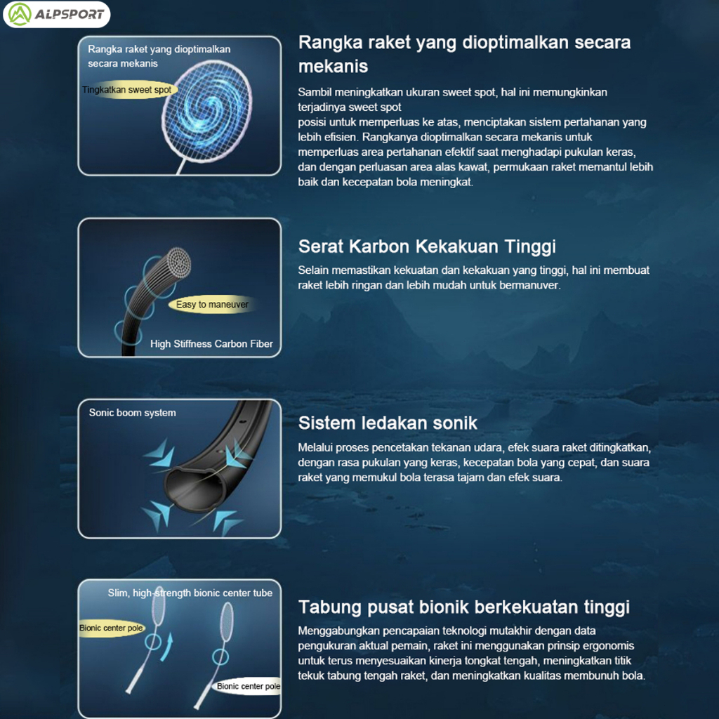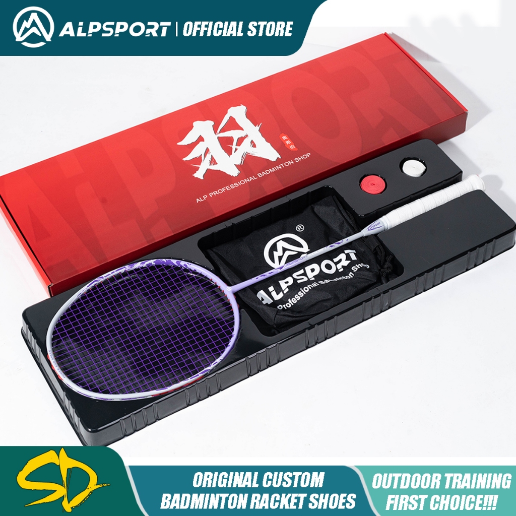 ALPSPORT New SD 4U Max 28LBS 100% Full Carbon Fiber Pro Raket Badminton Original Desain Strung Raket Bulutangkis Ori Ran