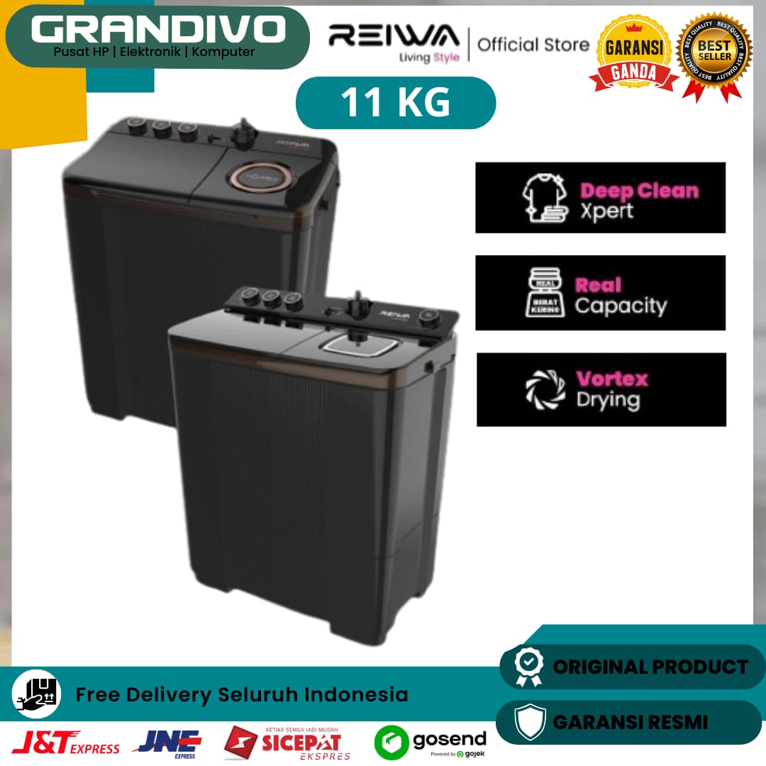 REIWA MESIN CUCI WS 1203 MKBN KAPASITAS 11 KG 370 WATT VORTEX DRYING DESAIN ELEGAN GARANSI RESMI - GRANDIVO