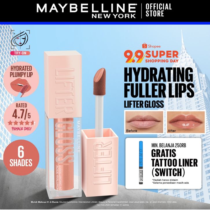 MAYBELLINE OFFICIAL Lifter Gloss Plump Make Up - 5.4mili Lip Gloss Hydrating Hyaluronic Acid