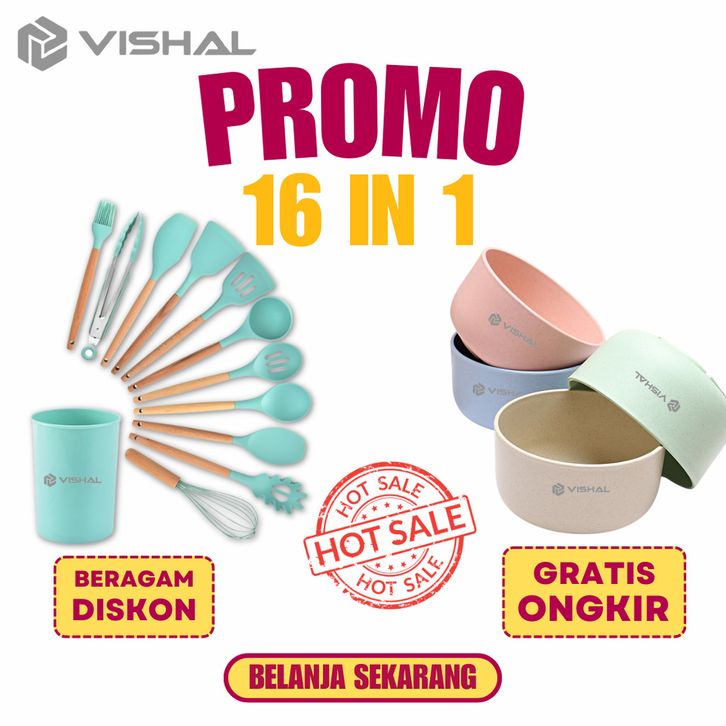 VISHAL Paket Combo 2in1 Set 4 Pcs Mangkok Bulat Jerami+Alat Masak Sehat Tahan Panas Silicone Kitchen tools Set Spatula