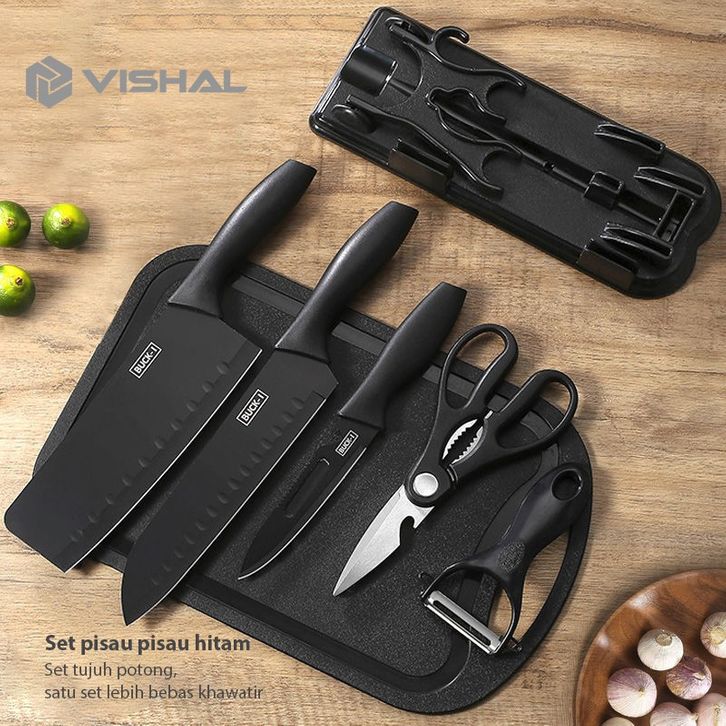 VISHAL 7 IN 1 PISAU SET TALENAN / Pisau Dapur Set Potong Daging Dan Buah/Pisau Dapur Set VS-1821