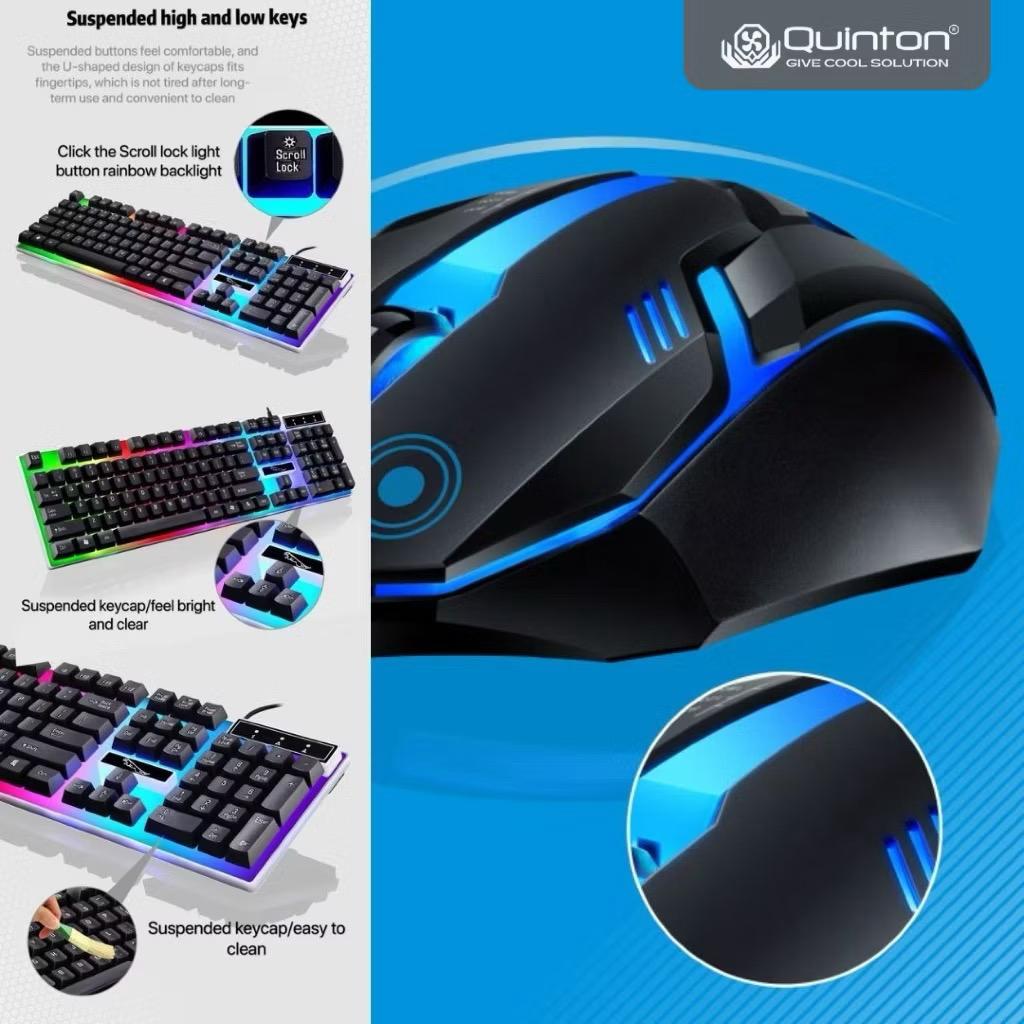 Quinton Keyboard combo mouse GAMING RGB USB wired full size 104Keys for desktop PC Laptop windows