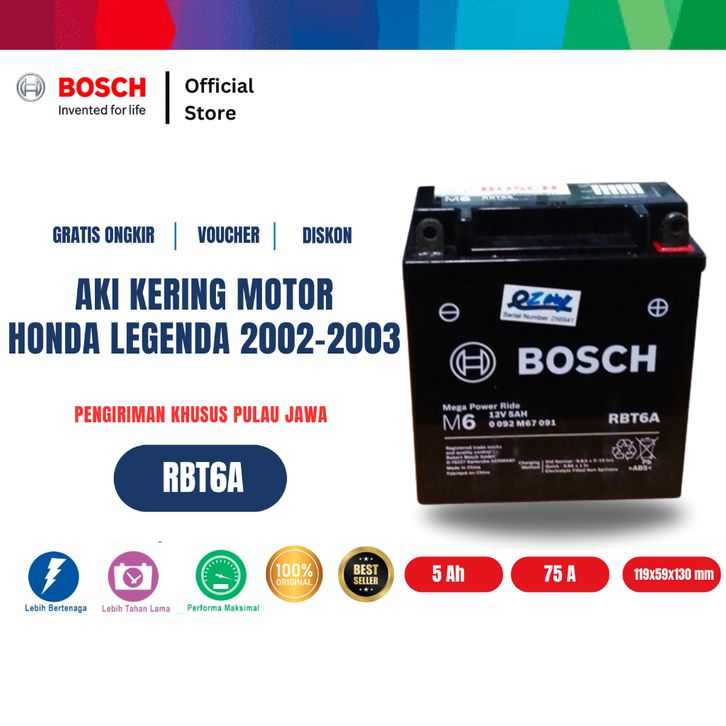 Bosch Aki Kering Motor Honda Legenda 2002-2003 - Maintenance Free - RBT6A