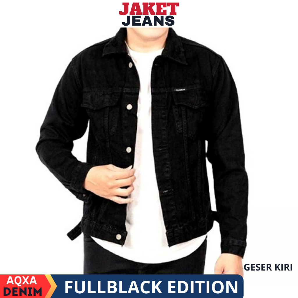AQXA Jaket Jeans Denim Pria Cowok Stret Casual Hitam Polos Murah Tebal