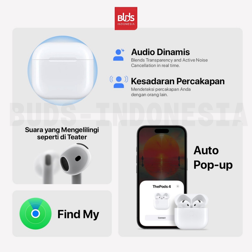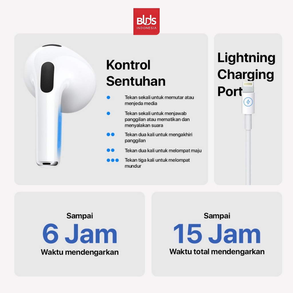 BUDS TWS Pods Gen4 Earphone bluetooth headset iPhone + Free Premium Silicone Softcase with Hook for AirPods Gen 4 AirPod