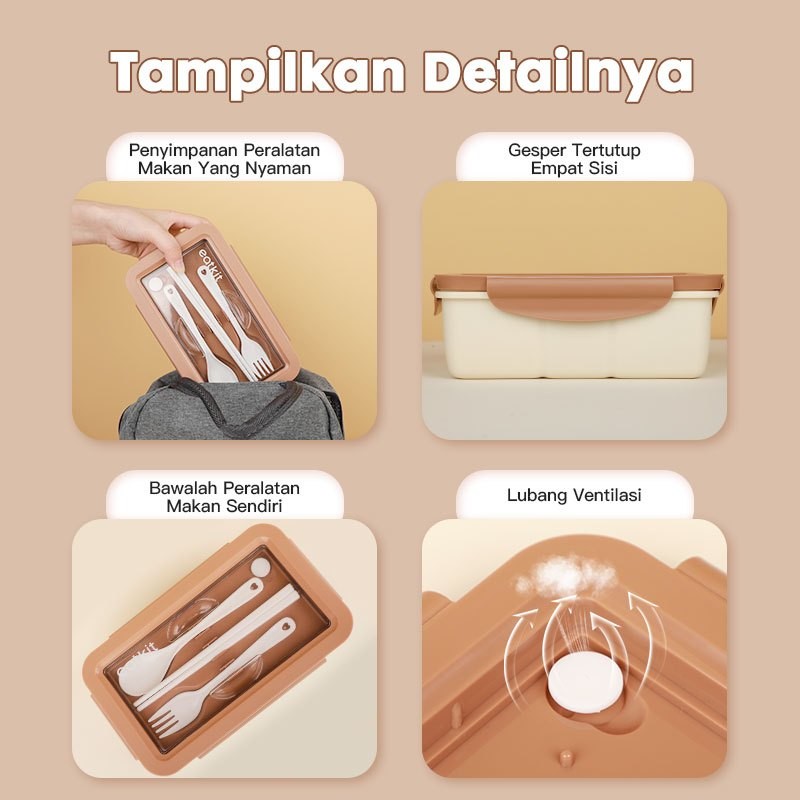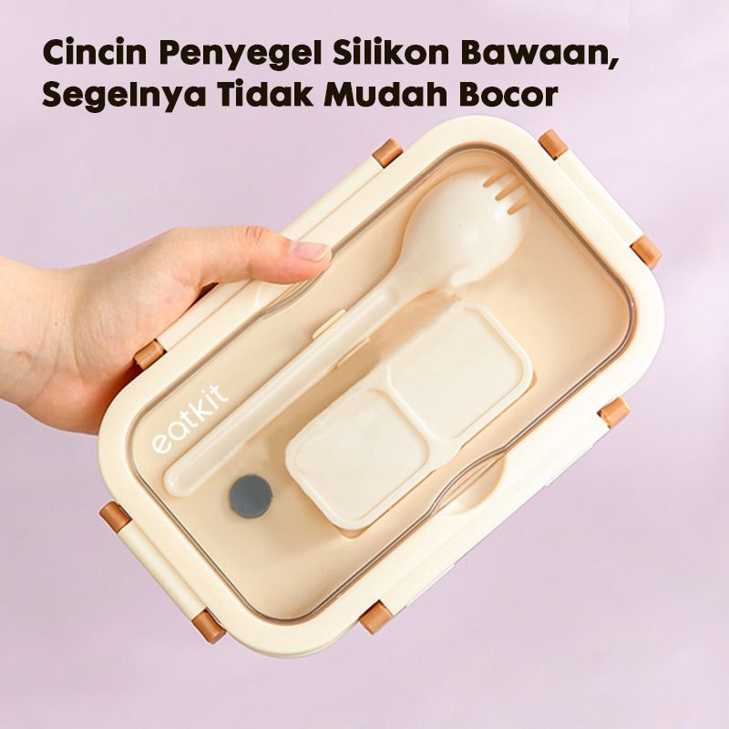 [Mall] Eatkit 3 In 1 Lunch Box Set | Lunch Box Microwaveable 1000ml | Anti Bocor Free Sendok Garpu Kotak Makan Terlaris