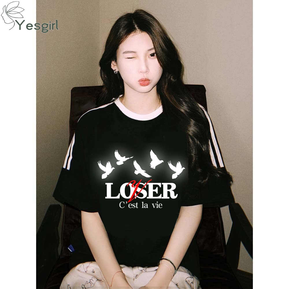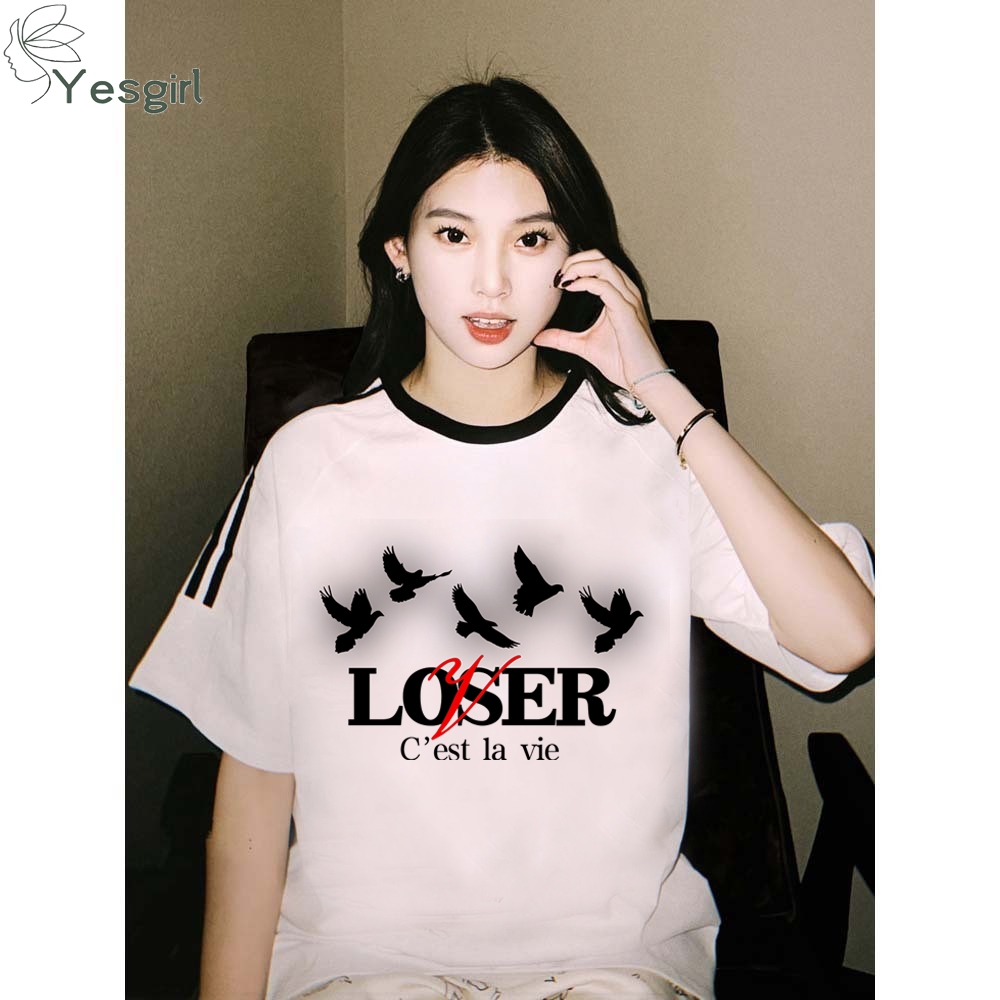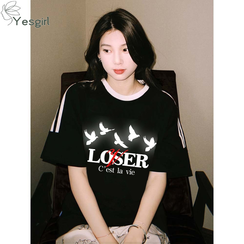[Mall] Kaos Wanita Hitam Putih Motif LOSER Peace Dove – Kaos Oversize Premium Korean Style Lengan Pendek