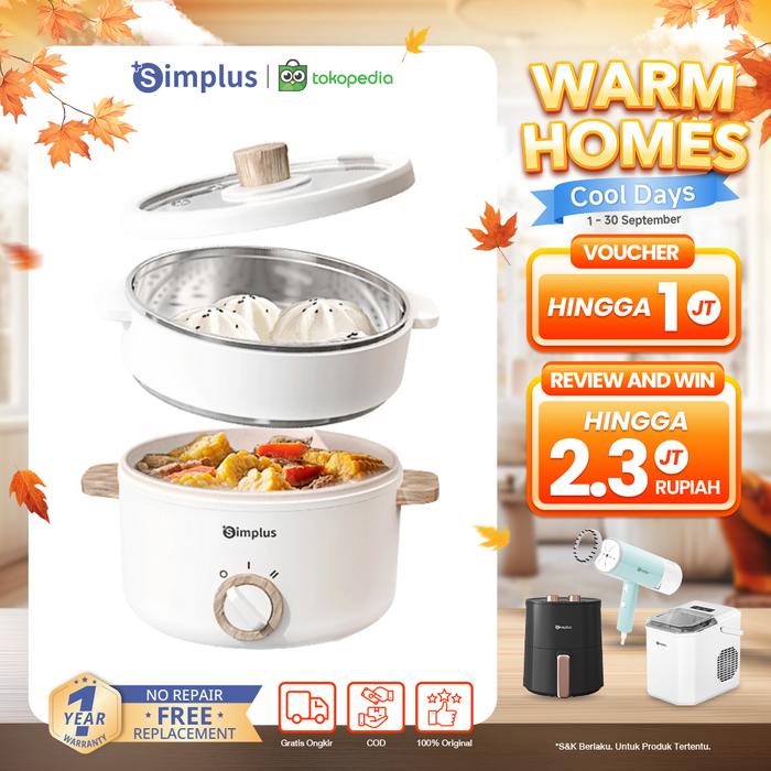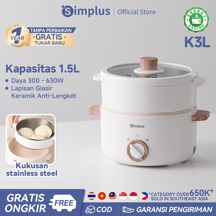Panci Listrik ExclusiveSimplus Panci Elektrik 1.5L Multifungsi Low Watt 630W Panci Keramik Anti