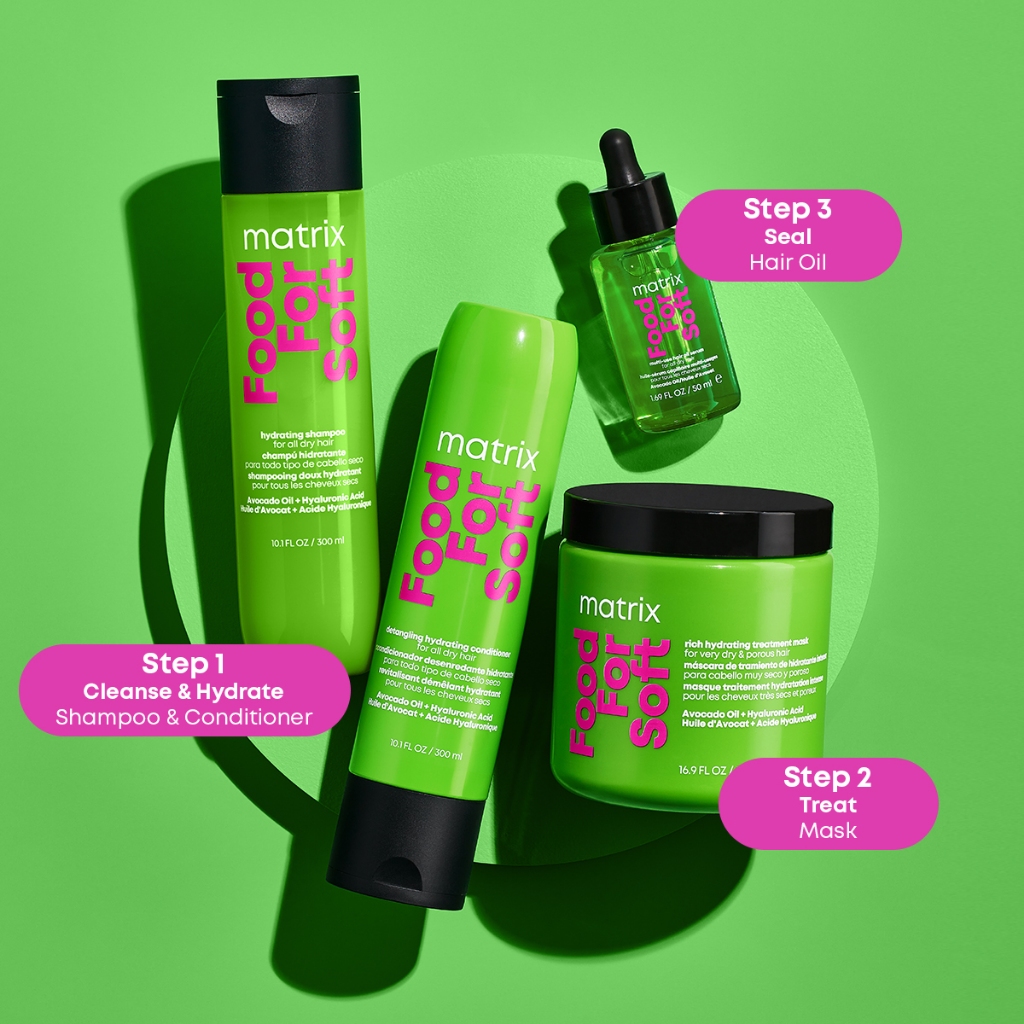 HAIR CARE MATRIX FOOD FOR SOFT GLOW MANIA COLOR PROTECTING INSTACARE BUILD-A-BOND SET SHAMPOO, CONDITIONER, MASK & SERUM
